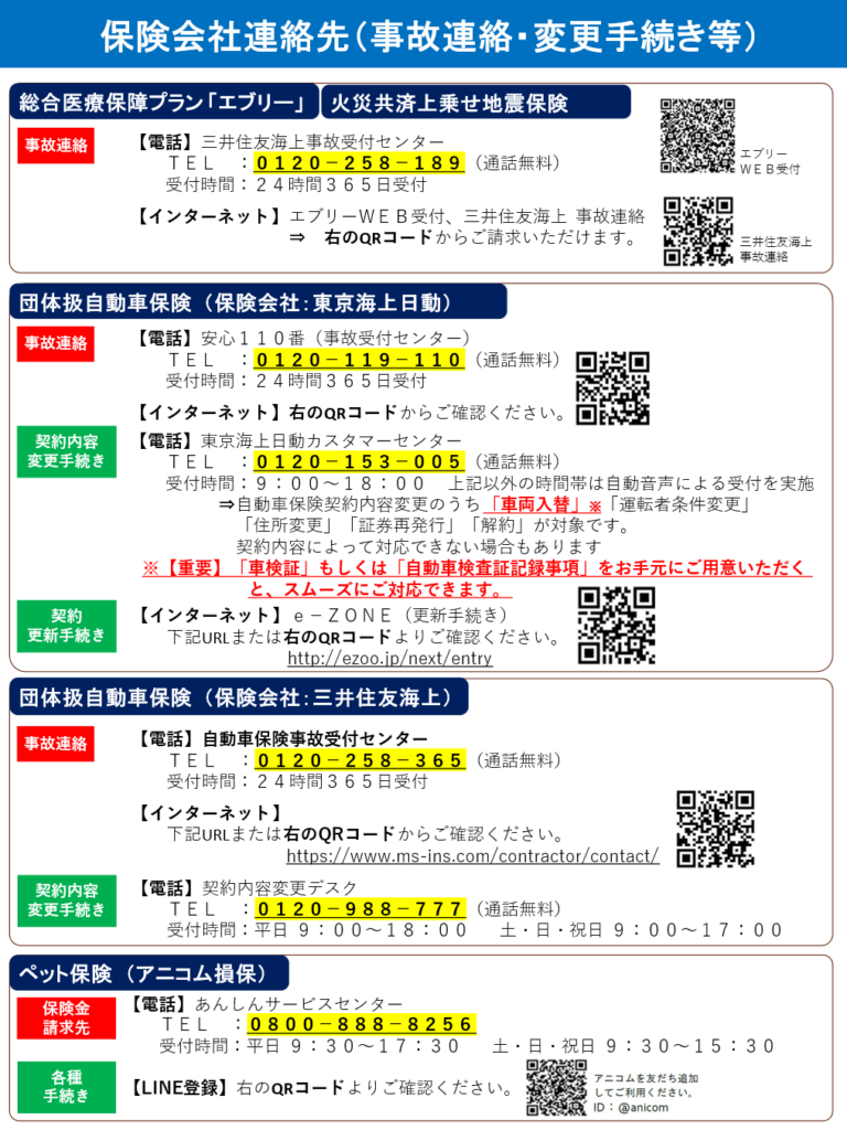 「保険会社連絡先(本記事の下部)※1」をご案内させていただきます。